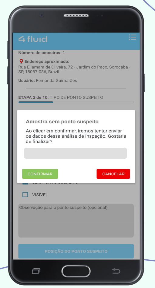 Se ao chegar no local observar que não há ponto suspeito, selecione a opção “sem ponto suspeito” e a pesquisa será finalizada.